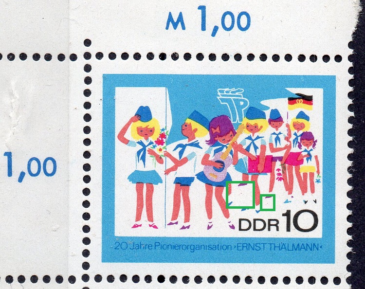 Möglicherweise hast du recht , weil der Punkt ist auch im Bogenarchiv etwas dunkler. Könnte rot sein, Also dann nur ein weiterer Punkt und keine Retusche. Der Fehler kommt auf Bogen 4 vor.