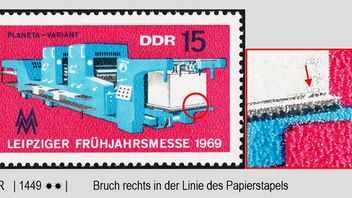 DDR 1449 | ** | Bruch rechts in der Linie des Papierstapels