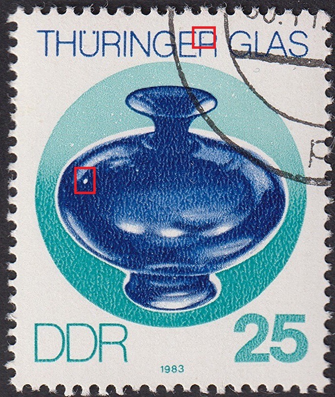 Hallo Thomas, die Nr. 2959he , mit Punkt im D, grüner Punkt vor Wellenlinie it Hacken, Strich und Punkt neben Nase, Strich im Zierfeld