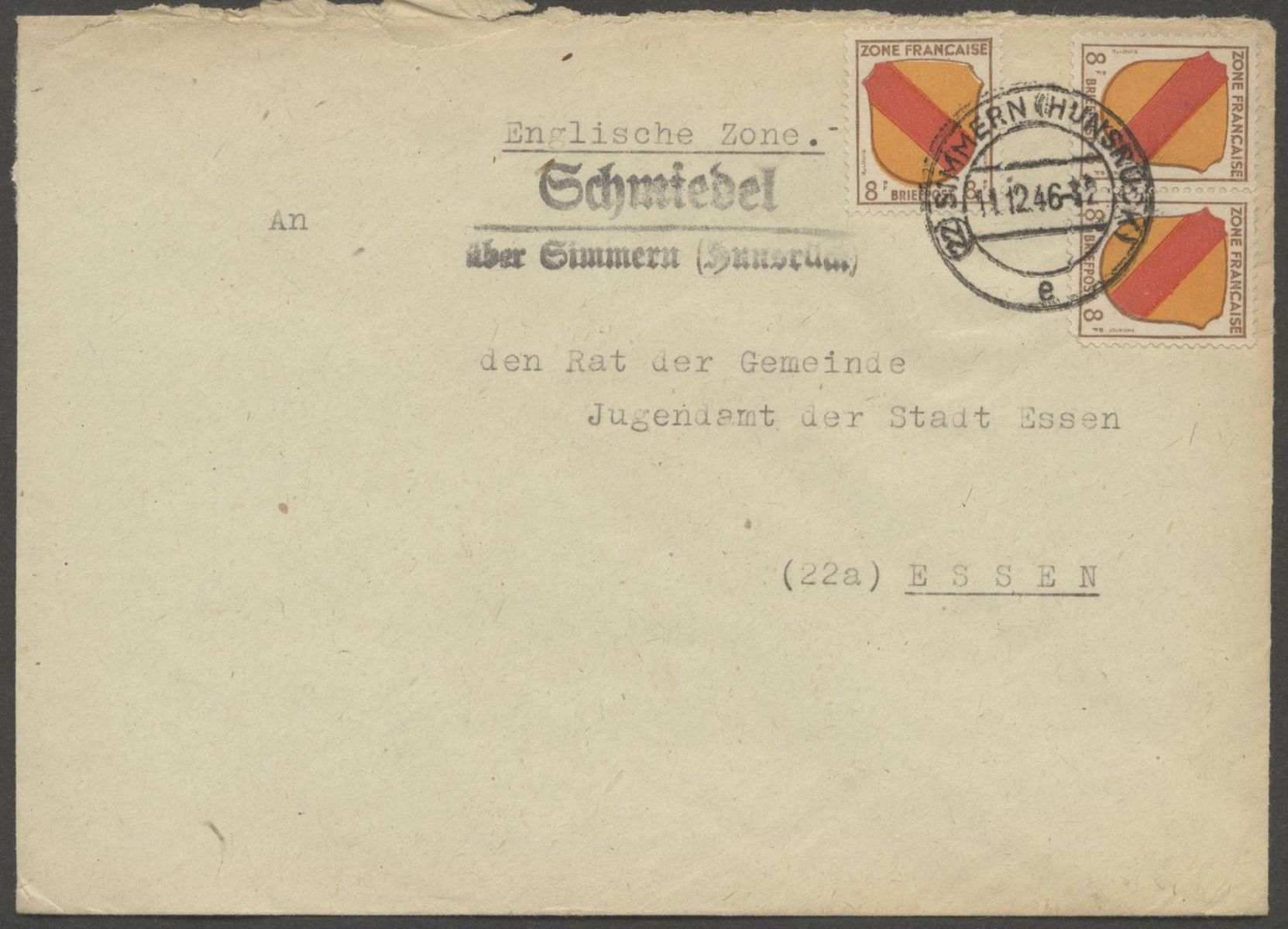 Zunächst eine Postkarte im Fernverkehr von Lingerhahn nach Metzingen vom 06.01.49, portorichtig frankiert mit der Michelnummer 19. Lingerhahn hat heute 480 Einwohner.