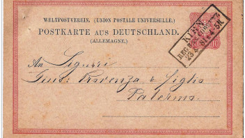 Hier eine Postkarte von Kirn (Nahe) nach Palermo aus dem Jahr 1881, abgeschlagen wurde ein dreizeiliger Rahmenstempel.