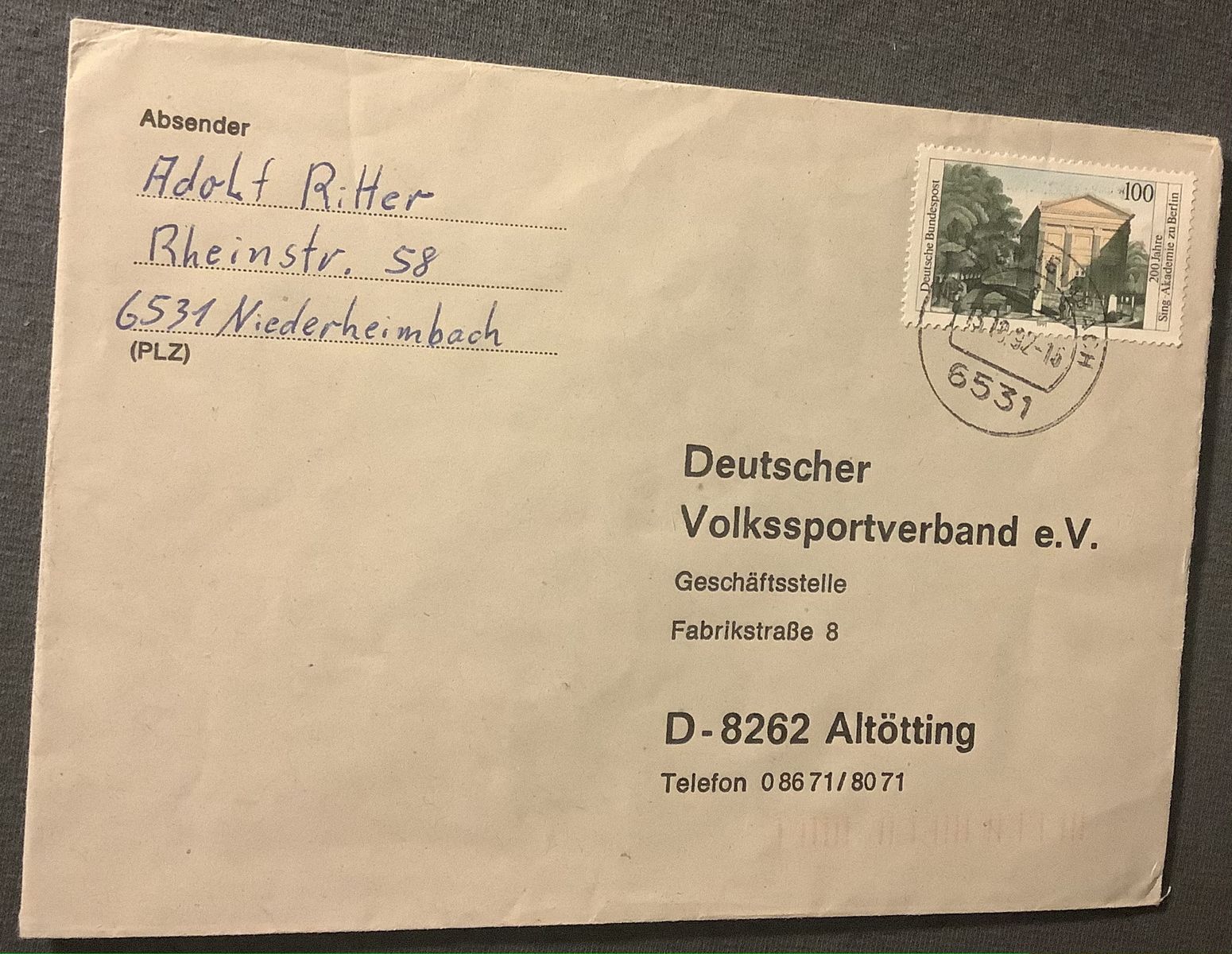 Nun aber auch mal ein Stempel, Niederheimbach hat weniger als 800 Einwohner, daher bin ich froh diesen Beleg in meiner Sammlung zu haben.