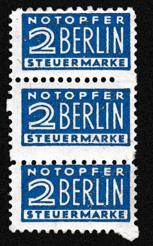 Kürzlich erwarb ich einen senkrechten Drilling der 2 Pf. Notopfermarke Berlin.
