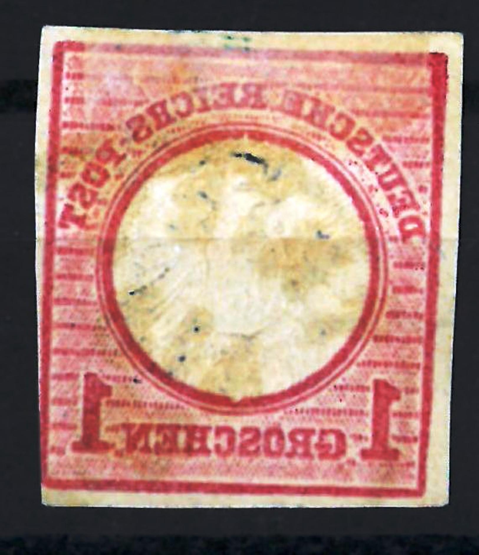 zu 2) Die unprüfbar gestempelte Marke mit lediglich senkrechter Zähnung gab es in der Forum nicht (in b-Farbe). Die Zähnung selber wurde von Herrn Ströh entsprechend signiert. Herr Müller hat seinerzeit noch auf "G" entschieden, also Großröhrsdorf.