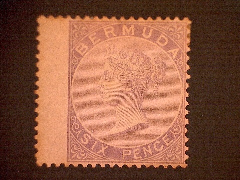 Es handelt sich um die Bermuda Marke Scott 5/6. Meine Fragen, 1. Kann jemand das Signum auf der Rückseite ausfindig machen, und 2. Ist die breite linke Seite normal oder etwas besonderes.