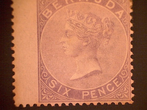 Es handelt sich um die Bermuda Marke Scott 5/6. Meine Fragen, 1. Kann jemand das Signum auf der Rückseite ausfindig machen, und 2. Ist die breite linke Seite normal oder etwas besonderes.