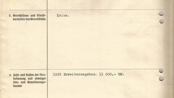 Folgend zu sehen sind das Postgebäude (2 v.l.), Teile des 'Grundblatt des posteigenen Grundstücks', sowie ein Lageplan des Grundstücks. Die letzten beiden Bilder zeigen den Grundriss und die Räumlichkeiten der Post.