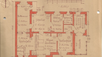 Folgend zu sehen sind das Postgebäude (2 v.l.), Teile des 'Grundblatt des posteigenen Grundstücks', sowie ein Lageplan des Grundstücks. Die letzten beiden Bilder zeigen den Grundriss und die Räumlichkeiten der Post.