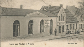 heute soll es hier mit einem Marlower Verein, genauer gesagt, dem Schützenverein weitergehen. Dieser existiert heute unter dem Namen 'Meckelbörger Vorderlader e.V. Marlow'. Auch zu früheren Zeiten gab es natürlich schon einen Schützenverein, wie folgende Ansichtskarte vom Schützenzug zeigt. Auf den Karten kann man gut erkennen, dass sich die Uniformen im Laufe der Zeit gewandelt haben, und das scheinbar historische oder historisch anmutende offensichtlich auch wandelbar ist.