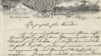Hier in Marlow ist noch alles beim alten, nur bedauert meine Frau es sehr, dass Ihr Frl. Schwägerin uns nun zu Ostern nicht verlassen will. Ihrer Frau Gemahlin und Ihnen geht es hoffentlich gut und werden wir doch wohl das Vergnügen haben, Sie nebst Frau Gemahlin hier mal wieder begrüßen zu können.