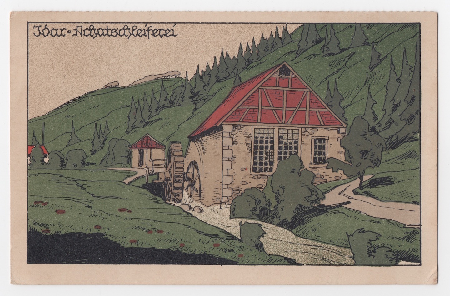 "Seit dem 15. Jahrhundert wurden die heimischen Edelsteinvorkommen in sogenannten Schleifmühlen verarbeitet. Von diesen standen einmal 183 am Idarbach, an der Nahe und an anderen Bachläufen um Idar-Oberstein. Am Idarbach allein waren es 56 Schleifen. In den ersten drei Jahrzehnten des 20. Jahrhunderts wurden die Bachschleifen nacheinander stillgelegt. Sie zerfielen und waren schon nach kurzer Zeit aus dem Landschaftsbild verschwunden.