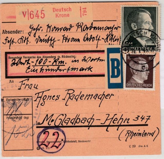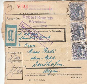 Hat jemand noch weitere Paketkarten mit diesen Aufklebern zum Zeigen? Bis wie lange wurden diese Beutelstücke verwendet?