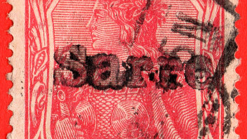 Der Aufdruck "Sarre" ist offenkundig von Hand mit einem Gummistempel angebracht worden.