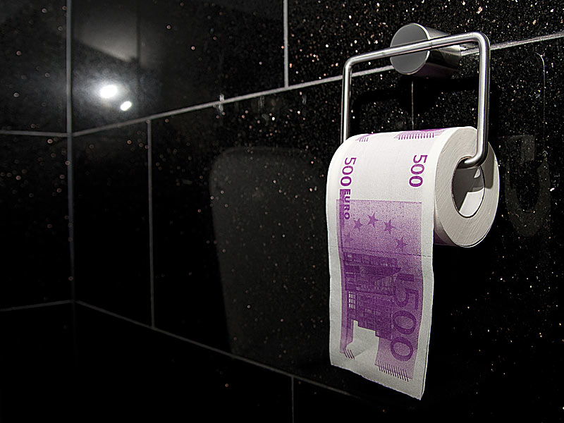 Täuschend echt aussehende 500€-Noten warten nur darauf, von Ihnen die Toilette runtergespült zu werden!