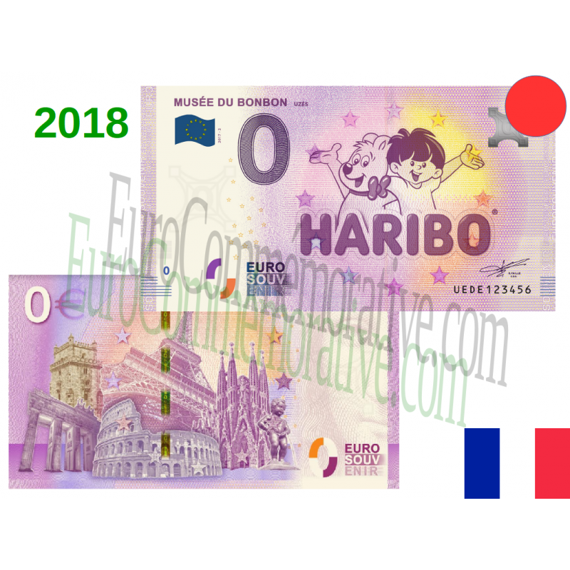 Das Bonbon-Museum in Uzès/Frankreich hat einen Euro-Souvenir-Schein herausgegeben, der für Haribo wirbt. Bei einem französischen Ebay-Händler noch zu 3,50 EUR zu kaufen, allerdings mit unverschämten Versandkosten in Höhe von 3,70 EUR !!8|
