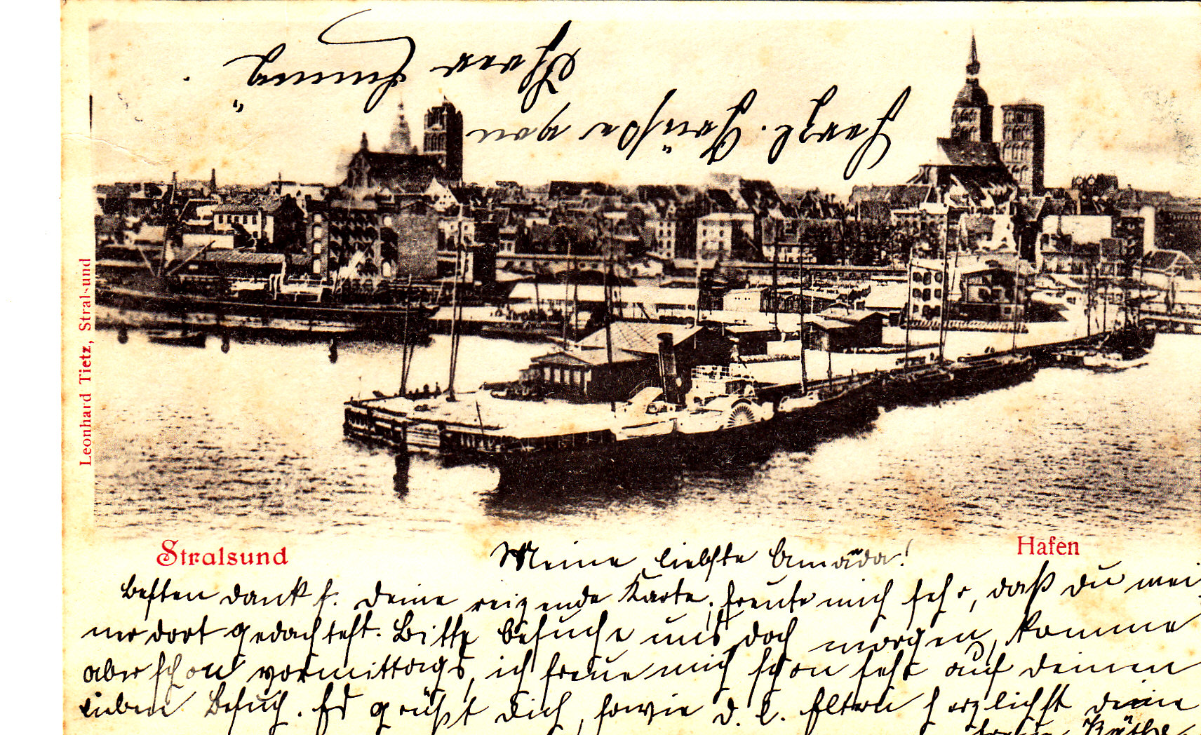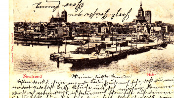 Zum Abschluss noch zwei Ansichtskarten mit Blick auf Stralsund von der Hafenseite.