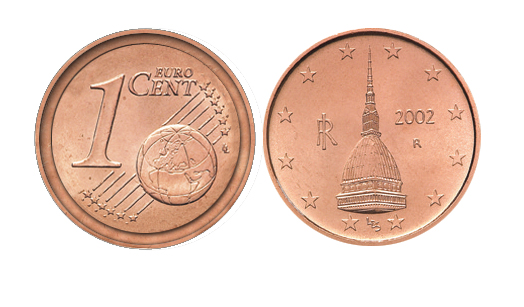 In Italien gab es im Jahre 2002 eine Fehlprägung der 1-Cent-Münze. Auf der Rückseite der Münze war die "Mole Antonelliana" von Turin abgebildet, ein Bauwerk, das eigentlich nur auf der Rückseite der 2-Cent-Münze vorgesehen war. Die richtige Abbildung wäre das "Castell del Monte" von Apulien gewesen, ein Schloss. Die Produktion der Fehlprägungen wurde sofort eingestellt und die richtigen Münzen nachgedruckt. Auf einer Auktion wurden sogar 6.000,- EUR dafür bezahlt:
