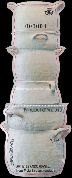 In Spanisch-Andorra erschien im März 2017 ein seltsamer Briefmarken-Block in Form von 6 übereinander gestellten Töpfen. Das Gebilde stellt ein Kunstwerk von Neus Mola dar zur Ausstellung "La veu silenciada". Die Auflage beträgt 70.000 numerierte Blocks, der Block mit der Michel-Nr. Block 12 ist dreimal gefaltet, auf der Abbildung sieht man aber nur eine Zähnung im unteren Bereich.