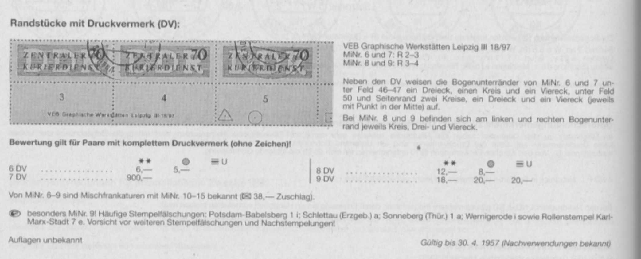 Echte Plattenfehler bei ZKD-Dienstmarken der DDR sehen so aus:
