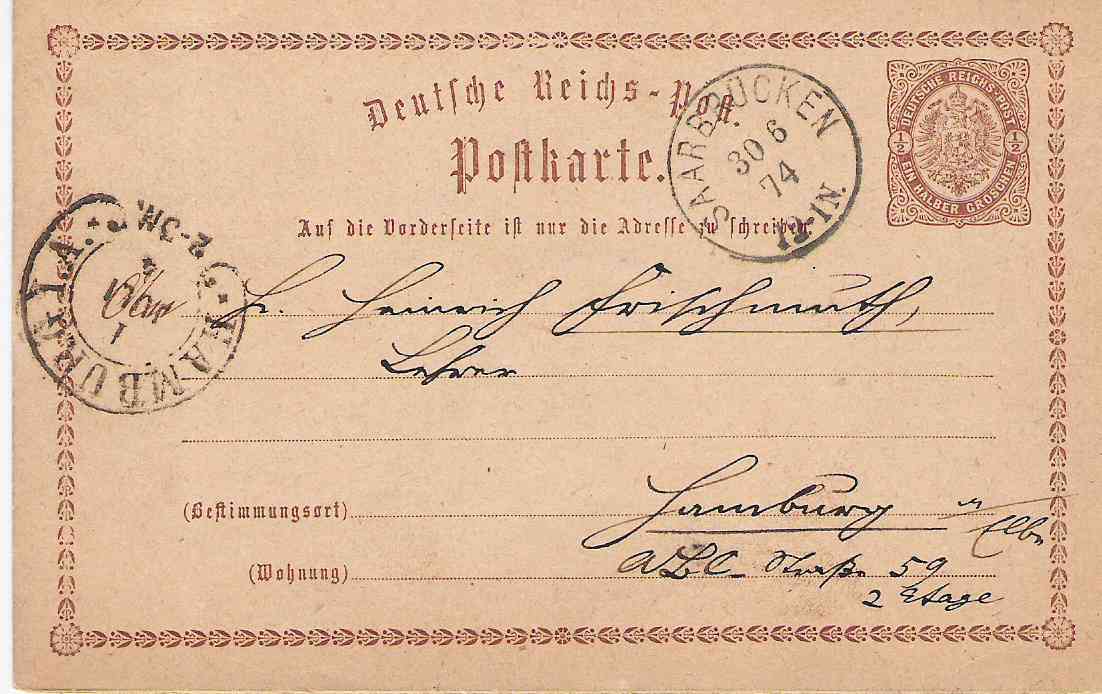 Diesmal eine schöne Ganzsache mit Stempel Hamburg 1 A