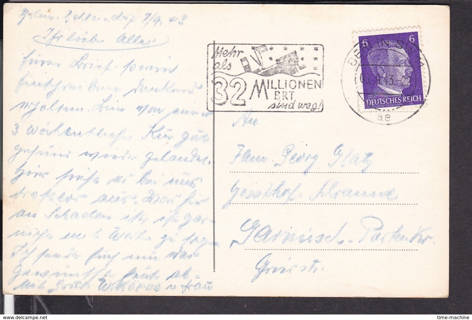 Bei Delcampe sah ich heute diesen Propagandastempel vom Deutschen Reich. Er zeigt einen Maschinenstempel-Einsatz mit stilisierter Amerika-Fahne, in der ein unter englischer Fahne fahrendes Schiff untergeht mit der Inschrift: Mehr als 32 Millionen Bruttoregistertonnen sind weg! Eine Anspielung auf die hohe Anzahl der bisher versenkten feindlichen Schiffe.