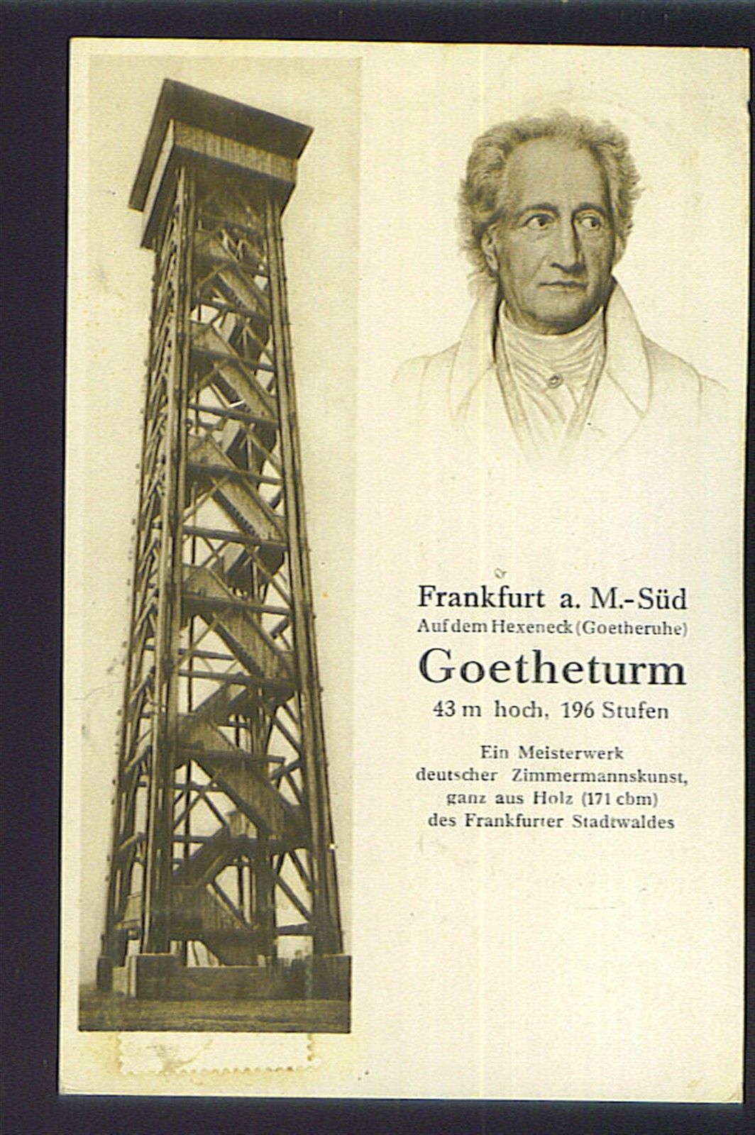 Ein beliebtes Frankfurter Wahrzeichen, der 43 m hohe Holzturm im Stadtteil Sachsenhausen, brannte 80 Jahre nach seiner Errichtung ab: