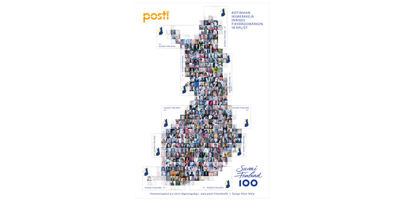 60.000 Bogen mit jeweils 10 Marken, die eine Menge Gesichter zeigen, die von den Finnen eingesandt wurden: