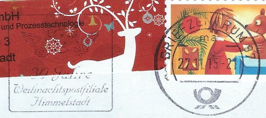 Ich hatte heute einen Termin in Himmelstadt. Himmelstadt, da war doch was ... ja das Weihnachtspostamt. Habe sogar einen Maschinenwerbestempel gefunden.