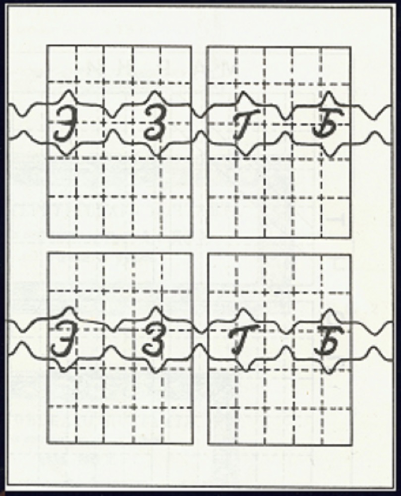 4. 7 Kop. senkrecht gestreiftes Papier - Druck auf der Gummiseite.