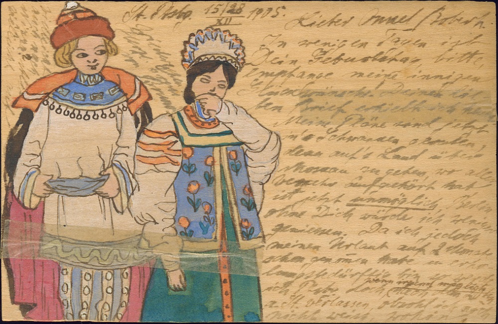 Die Karte lief nach Monako. Dies ist keine gewöhnliche Destination. Rückseitig dann eine handgefertigte Zeichnung eines Pärchens in Trachten, dazu mit deutschem Text. Und wem das nicht außergewöhnlich genug ist: Diese Karte ist aus Holz. Zwei Bruchstellen sind zwar überklebt, aber am sonsten ein toller Geburtstagsgruß. -