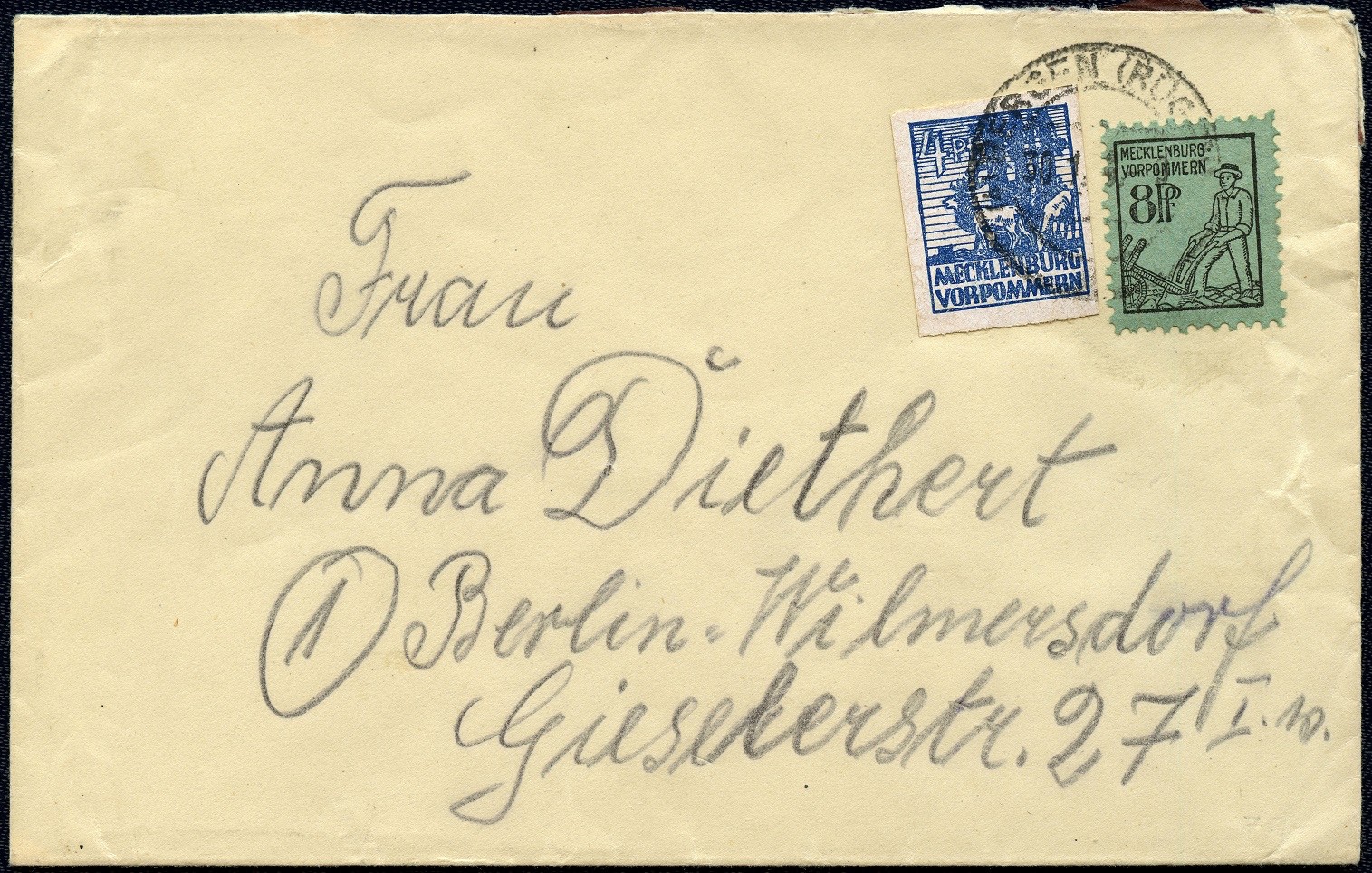 Den Anfang macht ein Brief vom 10. Dezember 1945, der auf dem Postamt Schwerin aufgegeben wurde.