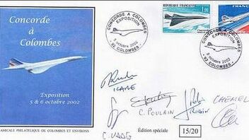 hier ein nettes Briefchen ;) von einem Pilotentreffen anläßlich einer Briefmarkenausstellung in Colombes/Frankreich-die Namen der einzelnen Concorde-Piloten müßten zu entziffern sein: