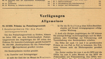 Verfügung Nr. 12/1950 - Prämien im Postzeitungsvertrieb