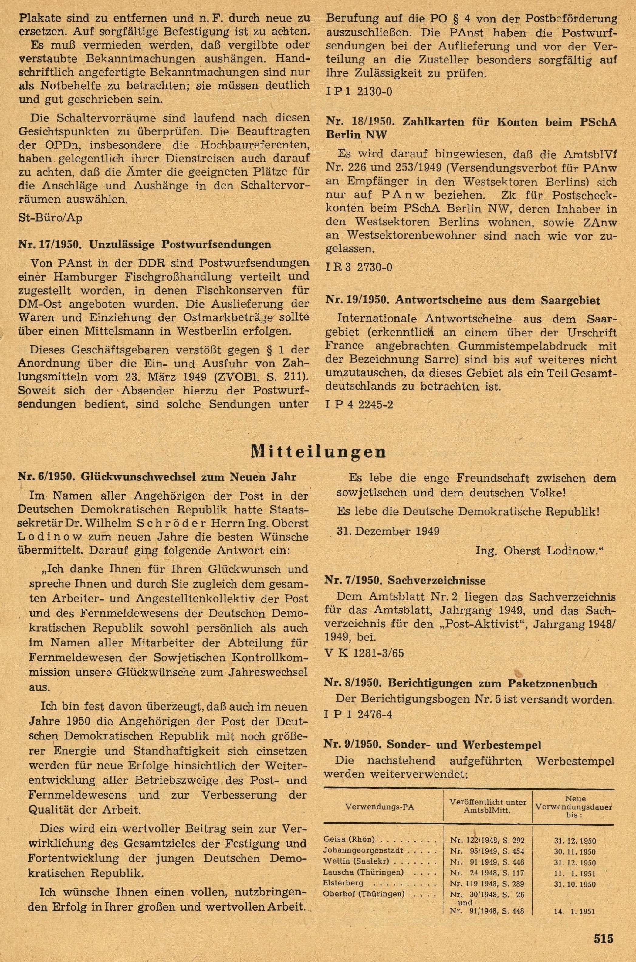 in diesem Beitrag stelle ich euch die Amtsblätter des Ministeriums für Post und Fernmeldewesen der DDR des Jahres 1950 zur Verfügung. Viel Spaß beim Lesen.