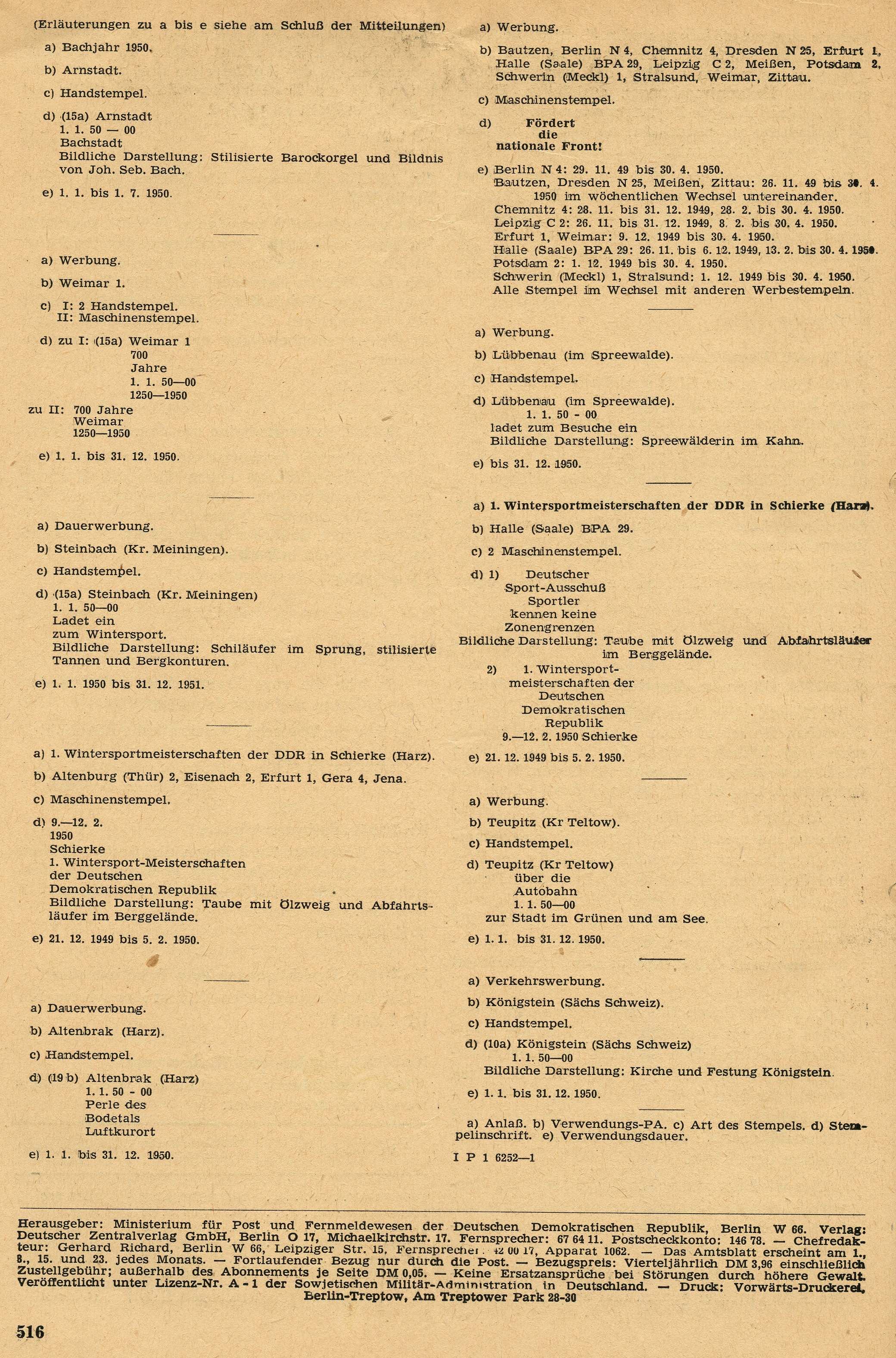 Amtsblatt des Ministeriums für Post und Fernmeldewesen der Deutschen Demokratischen Republik - Jahrgang 1950