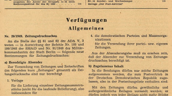 Verfügung Nr. 20/1950 - Zeitungsdrucksachen