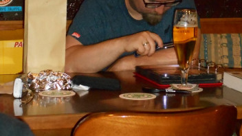 1. Uli bei der Arbeit, der Daumen ist in Aktion