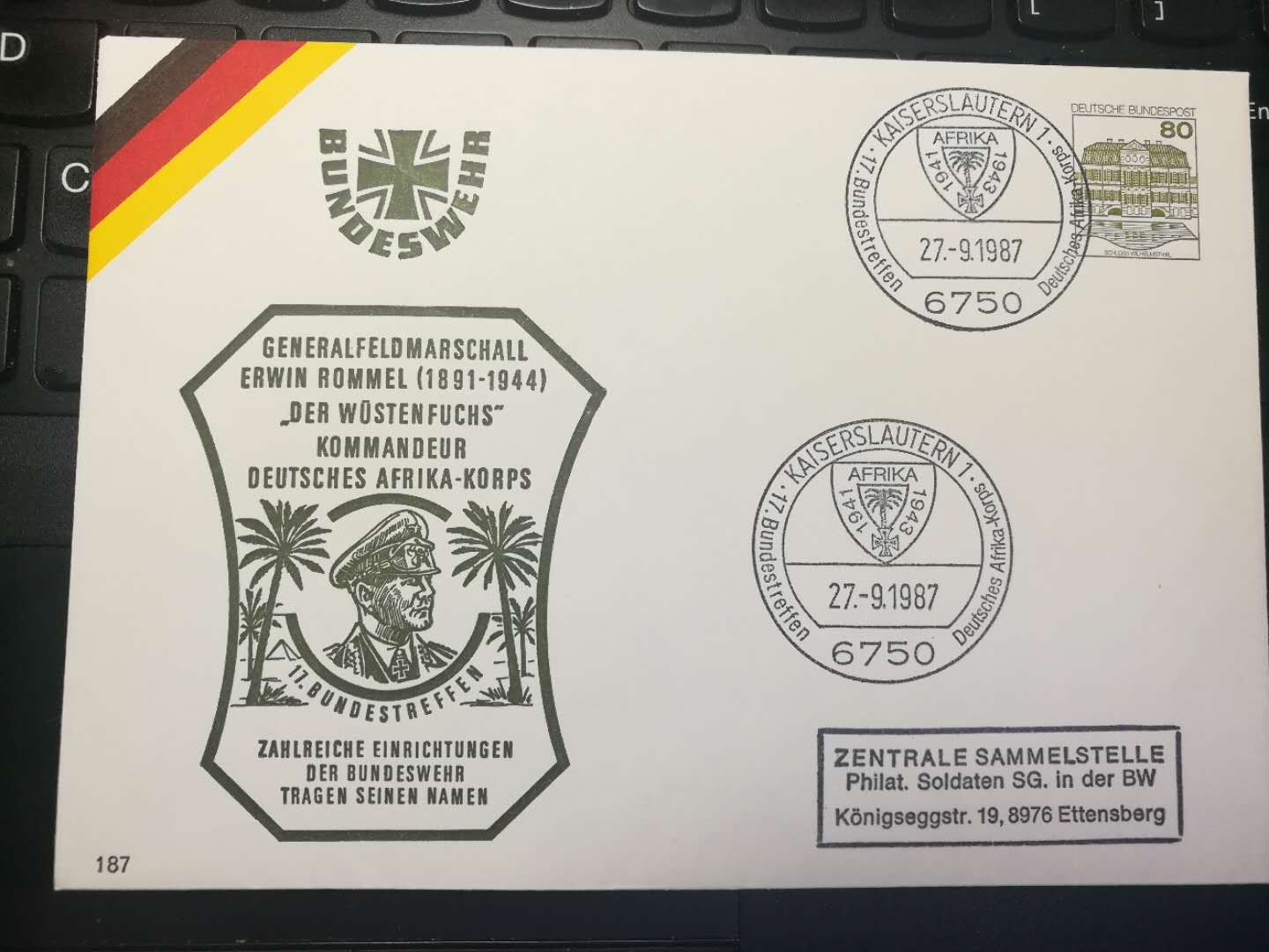 These private custom-made Postal Stationery (Privatganzsache) are numbered at the bottom of the envelope. I know that in Germany the promotion of the Nazis is prohibited. Why is Rommel?