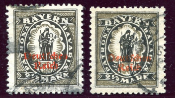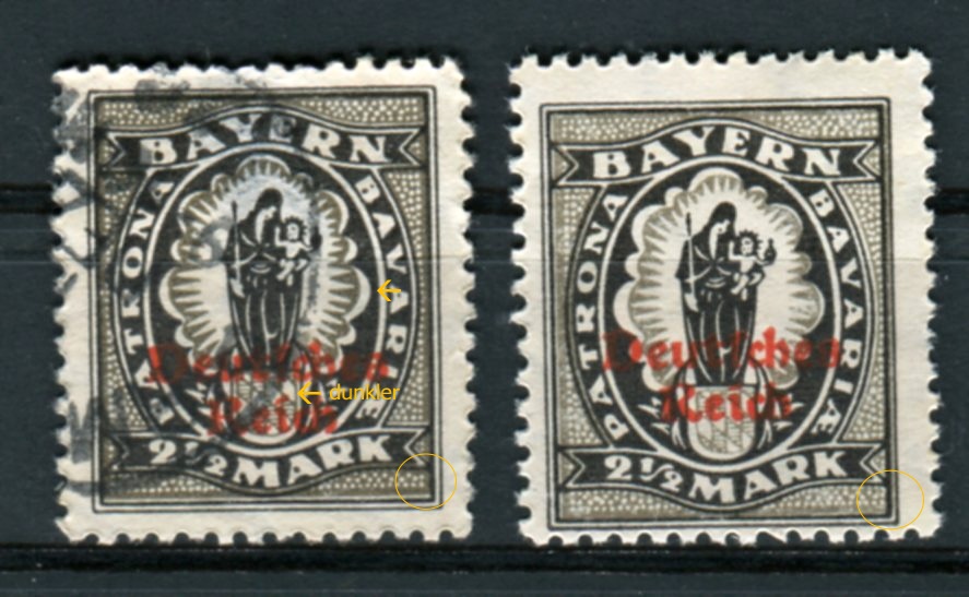 Auch ist die Farbe des Aufdruck "Deutsches Reich" bei Type I Farbe rot, wogegen bei Type II der Aufdruck "Deutsches Reich" eher ein orangerot ist.