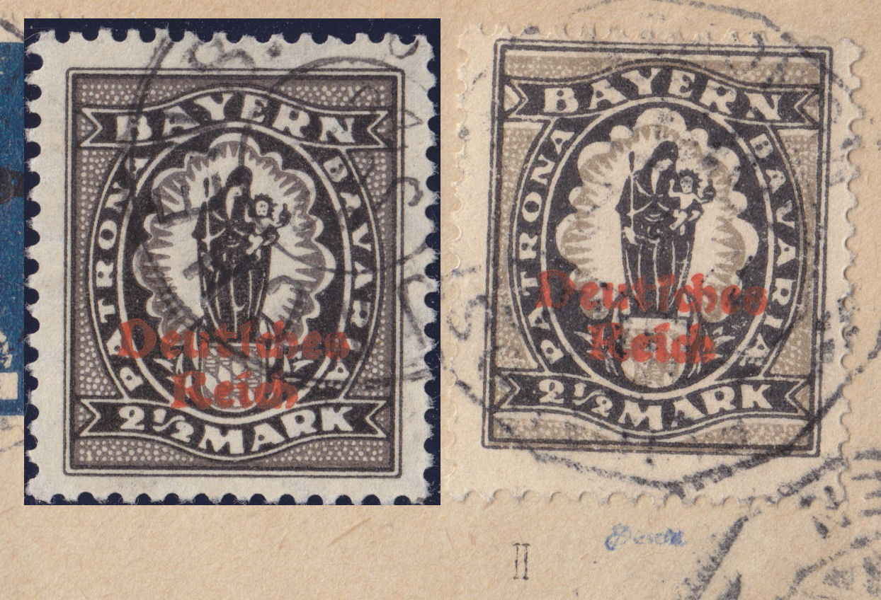 Auch ist die Farbe des Aufdruck "Deutsches Reich" bei Type I Farbe rot, wogegen bei Type II der Aufdruck "Deutsches Reich" eher ein orangerot ist.