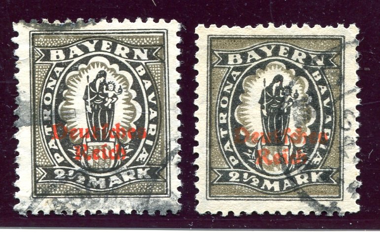 Auch ist die Farbe des Aufdruck "Deutsches Reich" bei Type I Farbe rot, wogegen bei Type II der Aufdruck "Deutsches Reich" eher ein orangerot ist.