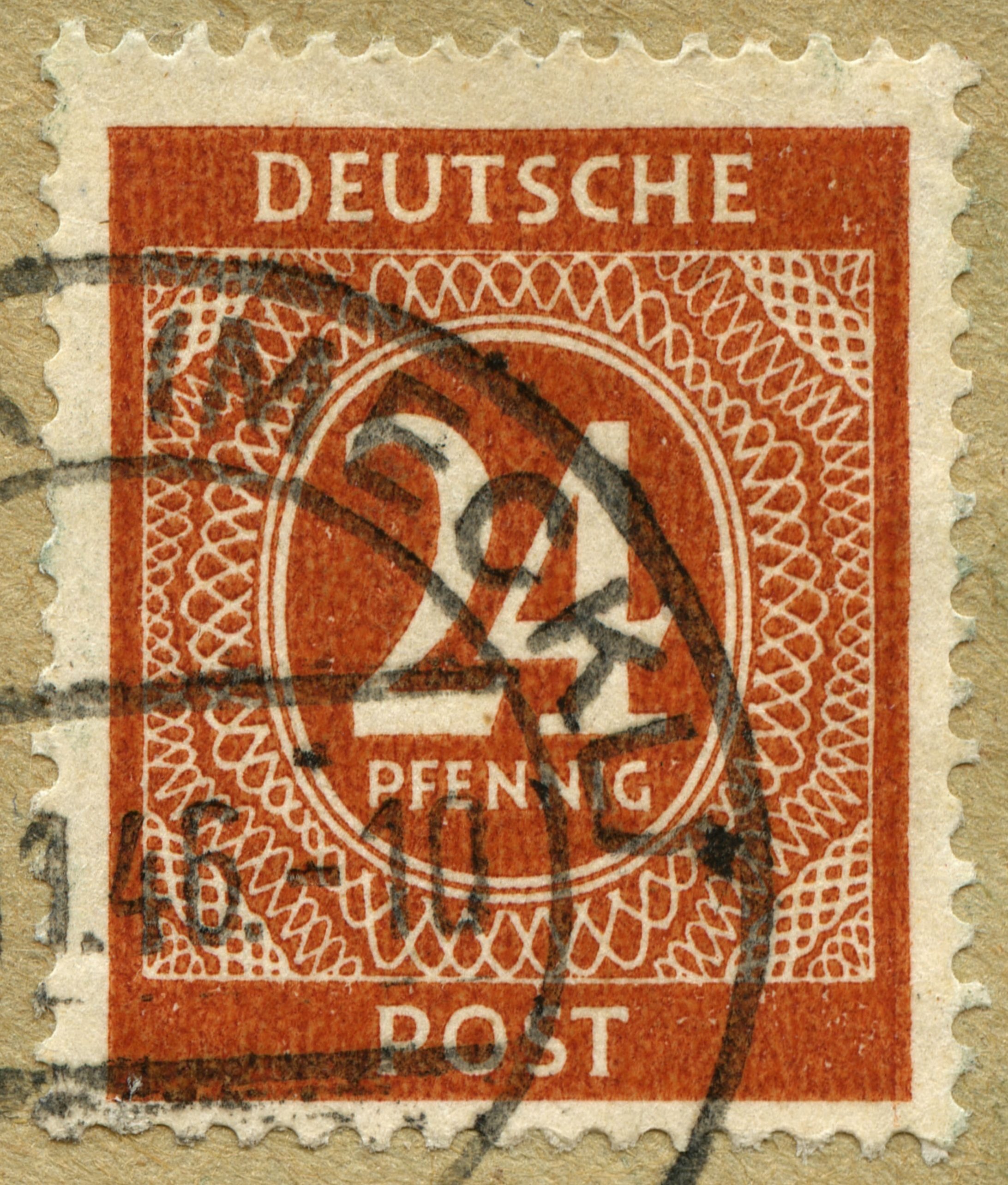 11.02.1946 Freimarken der Ersten Einheitsausgabe für alle vier Besatzungszonen in Deutschland unter der Überwachung des Alliierten Kontrollrates, sogenannte "Ziffernserie", Wertstufe 24 Rpf, postfrischer Wert