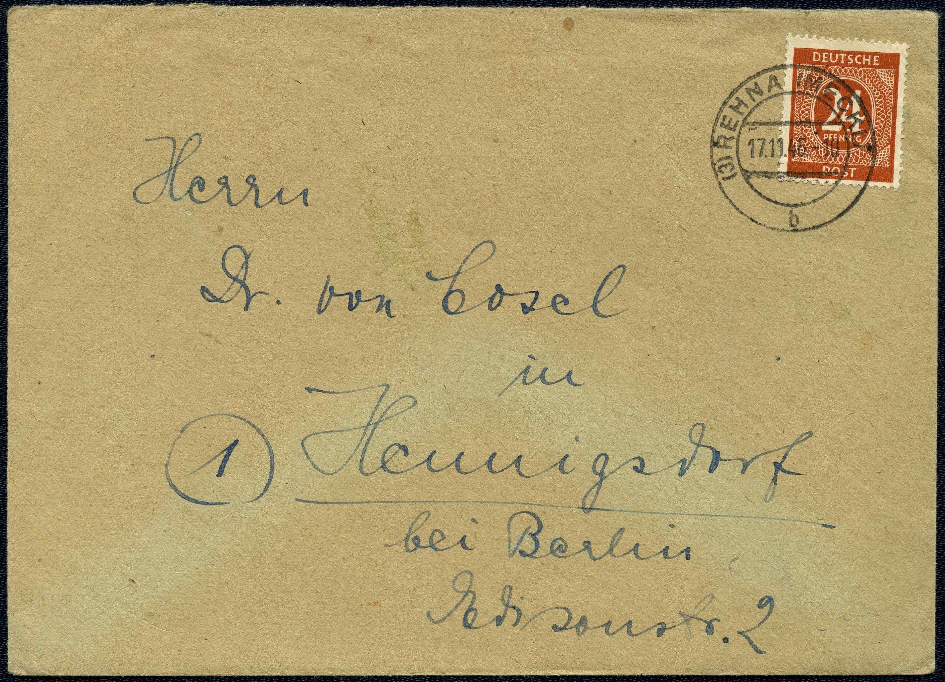 Eine Mi.-Nr. 925 in portorichtiger Verwendung als Einzelfrankatur auf einem Inlandsbrief im Fernverkehr bis 20 g vom 17. November 1946, aufgegeben auf dem Postamt in Rehna.