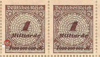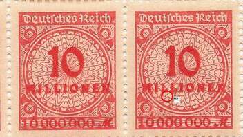 Solche Fehler treten bei den Überdruck-Marken der Hochinflation relativ häufig auf. Allerdings überwiegend bei postfrischen Marken, die fast alle aus der Makulatur stammen. Das ist auch der Grund, warum gestempelte Stücke kaum einmal zu finden sind. Das Zustandekommen solcher Fehler liegt darin begründet, dass die Druckplatte aus mehreren Klischeeblöcken zusammengesetzt war und an diese die Randdrucke angefügt wurden, also auch die Reihenwertzahlen. Wenn diese „Anfügung“ nicht präzise erfolgte und zu nahe ans Markenbild zu liegen kam, ergaben sich solche Fehler. Ein begehrenswertes Stück für jede Abartensammlung."