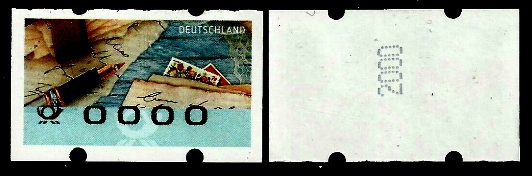 Bei Automatenmarken sieht man ja die merkwürdigsten Abarten. Mal ist der Wert an die falsche Stelle gedruckt, mal ist die Marke "verschnitten", sodass man beispielsweise an der Unterseite die ganzen Löcher hat und oben gar keine. Das kann man technisch ja alles erklären, aber aus diesem Stück werde ich nicht schlau: