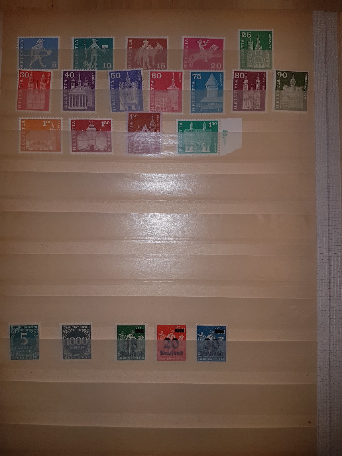 Die gelblichen Verfärbungen der Albumseiten sind kein gutes Zeichen. Entweder die Lagerung im Keller ist dem Album nicht bekommen, oder es stammt aus einem Raucherhaushalt. Sei es drum. Es handelt sich im wesentlichen um Massenware deren "Wert" auch ohne Verfärbungen nur gering (einstelliger Euro-Betrag) wäre .