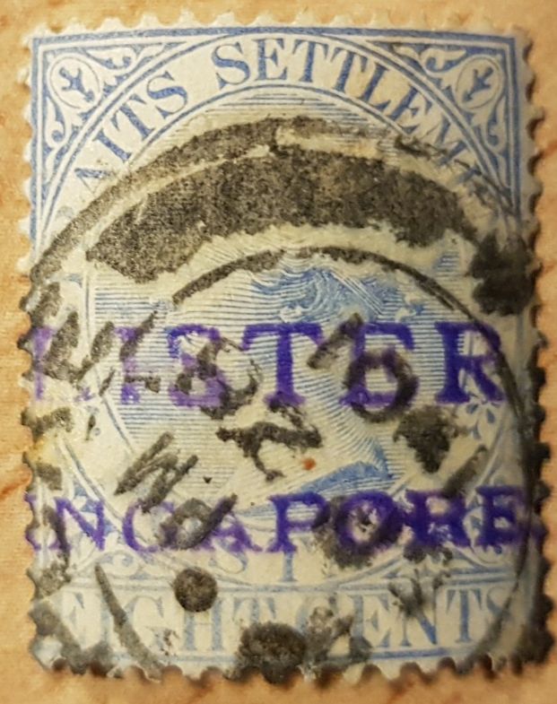 Die Marke der Straits Settlements etwas links unterhalb ist da schon interessanter. Den privaten Sicherungsstempel ..ISTER/(SI)NGAPORE würde ich sofort in meine Sammlung von Perfin-Vorläufern