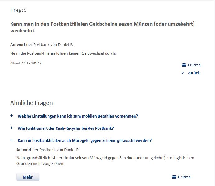 Du warst auf einer Postbankfiliale, die bekanntlich nichts mehr mit einer Post zu tun hat, genausowenig wie der Zeitschriftenhändler ein Verlag ist, weil er eine Zeitung verkauft. Und Geldwechseln muss keiner, viele tun's für ihre Kunden oder eben aus Kulanz