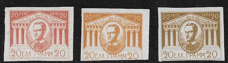 Eigenartige Marken, im Katalog unter Griechenland nicht zu finden. Wenn niemand das Rätsel lösen kann, würde ich bei der ARGE Griechenland mal anfragen, die wissen das sicher. Eventuell Vignetten oder Ausgaben einer früheren Exil-Regierung, die nicht amtlich waren?