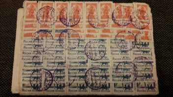 Da hat man wohl die Restbestände an kleinen Werten aufgebraucht, denn der Rubel rollte 1992 nicht mehr so richtig, und die Postgebühren waren heftig gestiegen.
